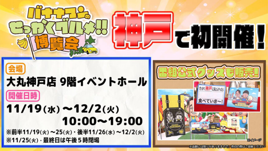 「バナナマンのせっかくグルメ!!」ファンの皆さん、そして神戸のグルメを愛する皆さん、お待たせいたしました! あの人気番組の世界観を“まるごと”体感できる、夢のようなグルメイベント『バナナマンのせっかくグルメ!!博覧会』が、ついに神戸に初登場します!