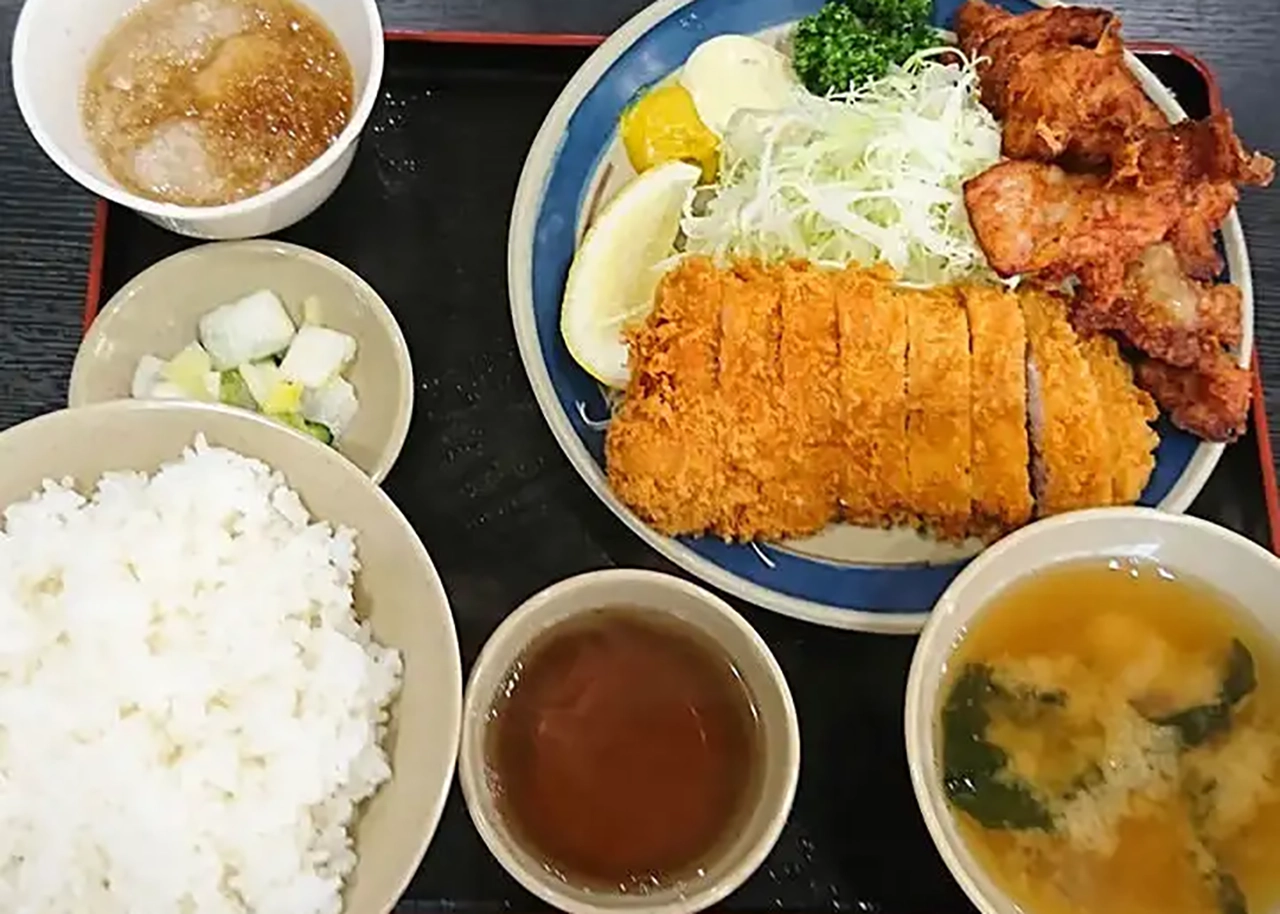 - 内容: 170gを優に超える厚切りとんかつ、爆盛りご飯、味噌汁、小鉢、漬物。
