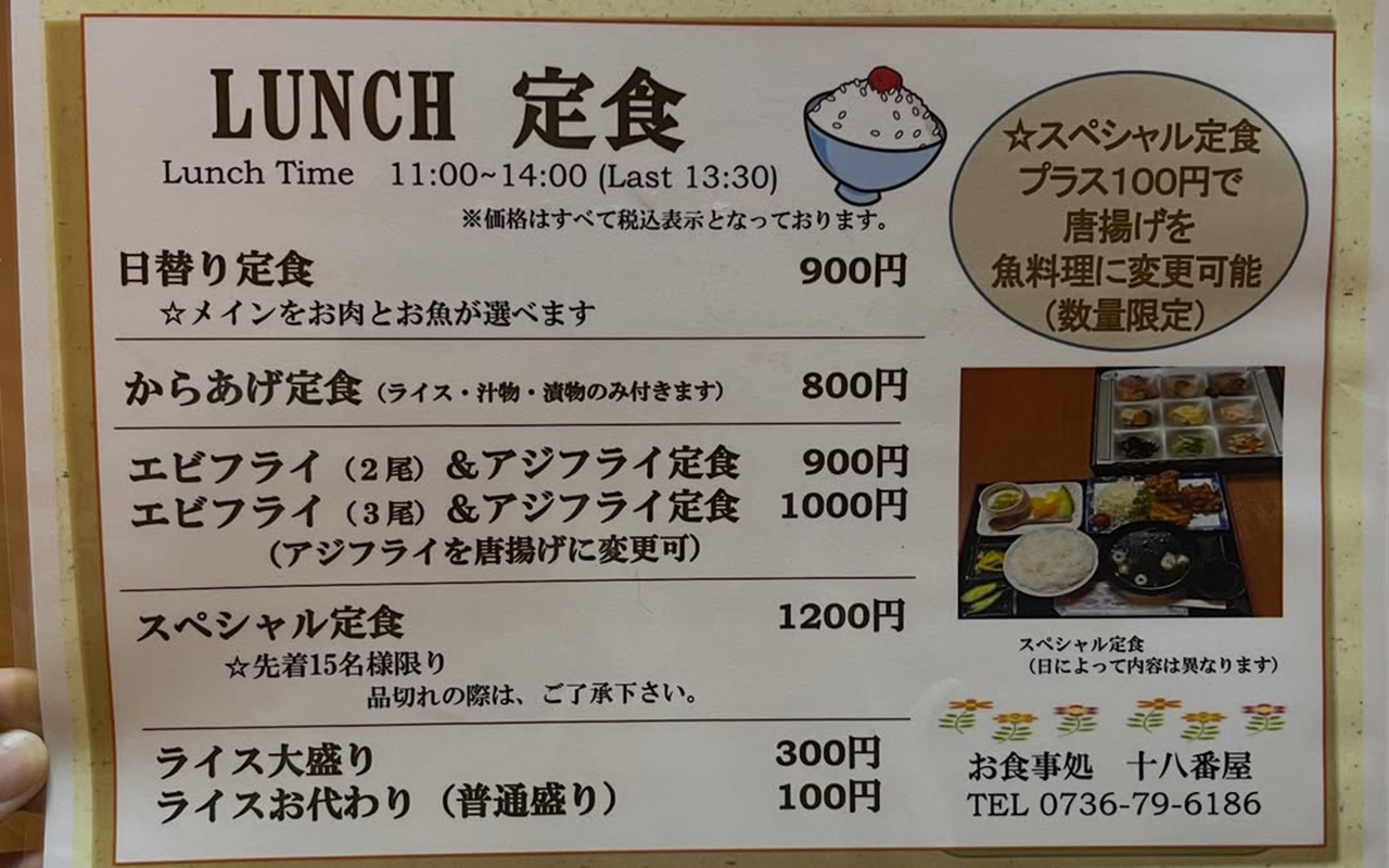 7. 「お食事処 十八番屋(おはこや)」店舗情報